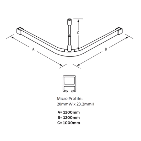1200mm x 1200mm L Bend Shower Curtain Track System in Designer Black - SCT_1200X1200_DESIGNER