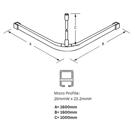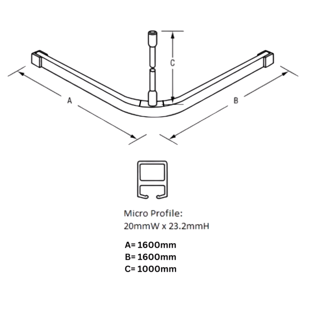 1600mm x 1600mm L Bend Shower Curtain Track System - SCT_1600X1600MM