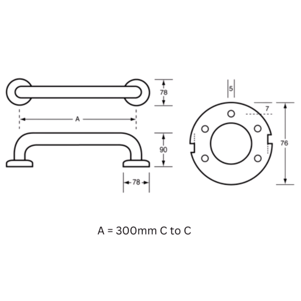 Dimensions: 300mm C to C