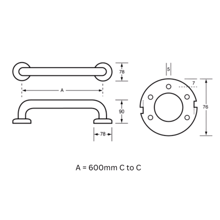 600mm Straight Grab Rail - MLR331