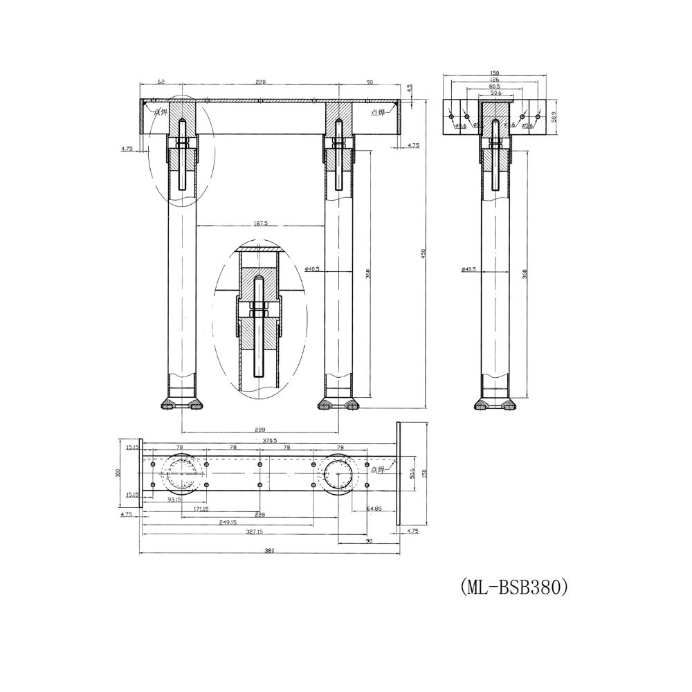 Adjustable Bench Seat Bracket in Designer Black - ML_BSB380_DESIGNER