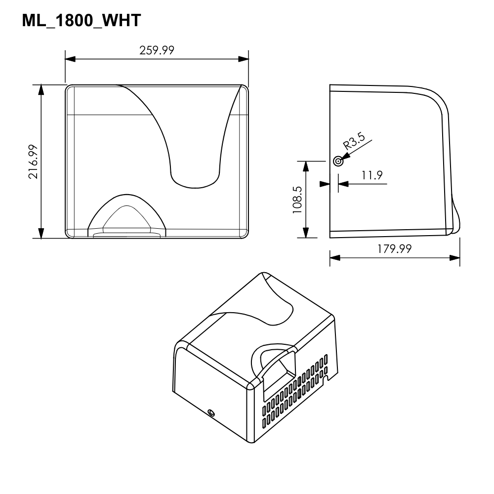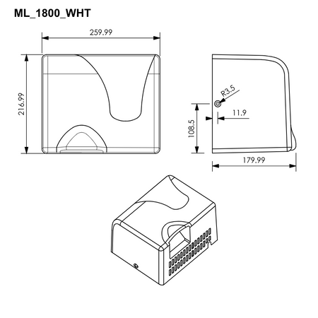 Dimensions: 216.99mmH x 259.99mmW x 179.99mmD