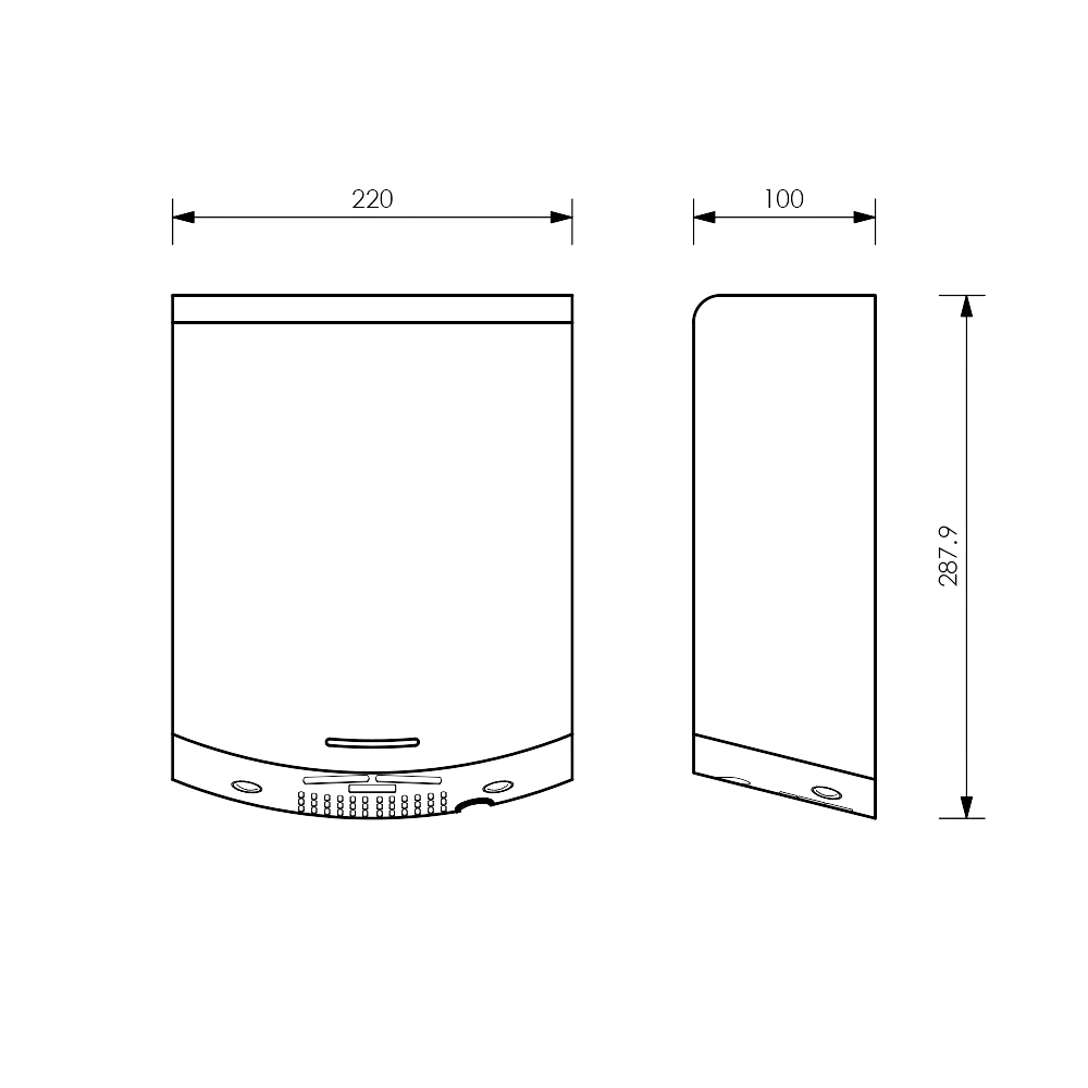 Dimensions: 287.9mmH x 220mmW x 100mmD
