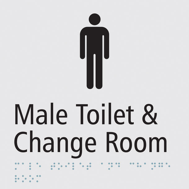 - Braille reads “Male Toilet & Change Room Sign”