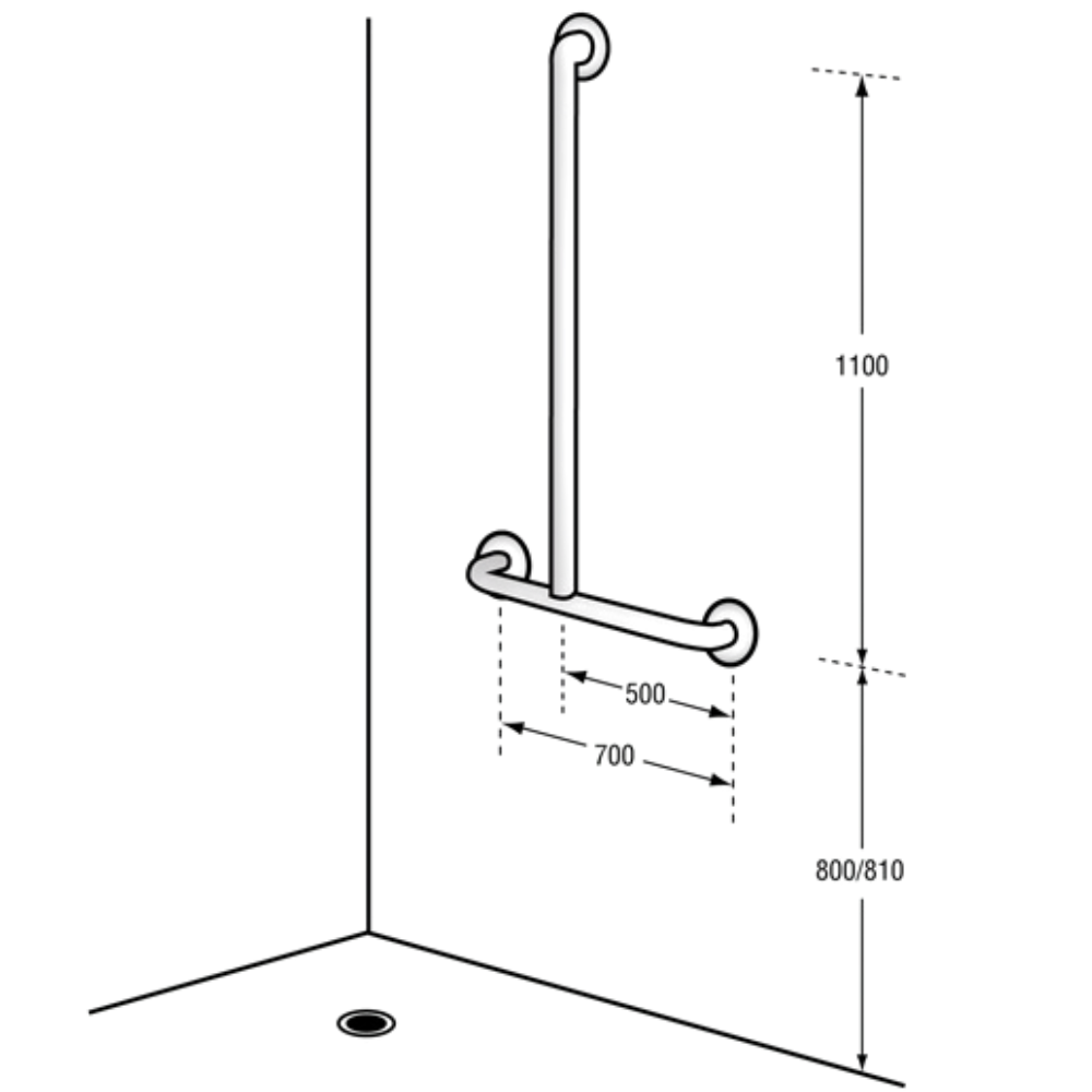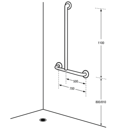 Offset Flush LH Mount Shower Grab Rail Kit in Satin Stainless Steel - ML_SK107_SS