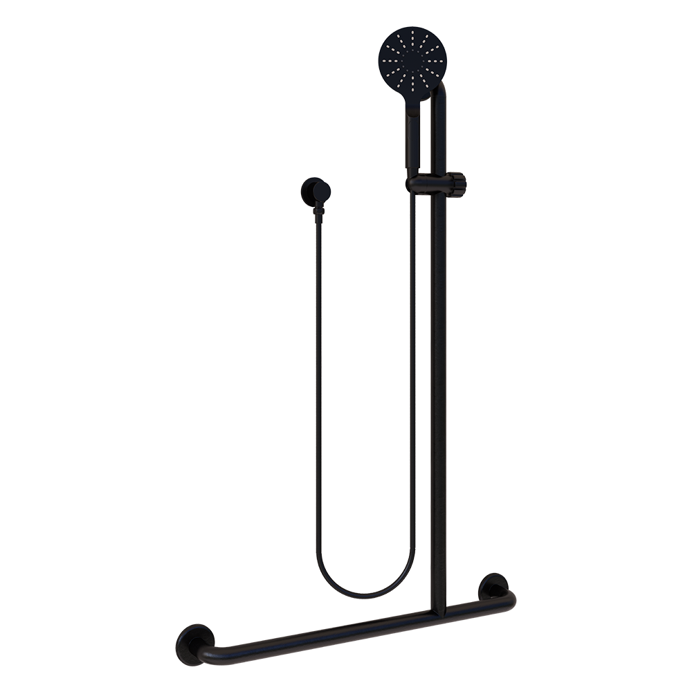 - #304 Grade Stainless Steel Grab Rail with a Designer Black Shower Kit