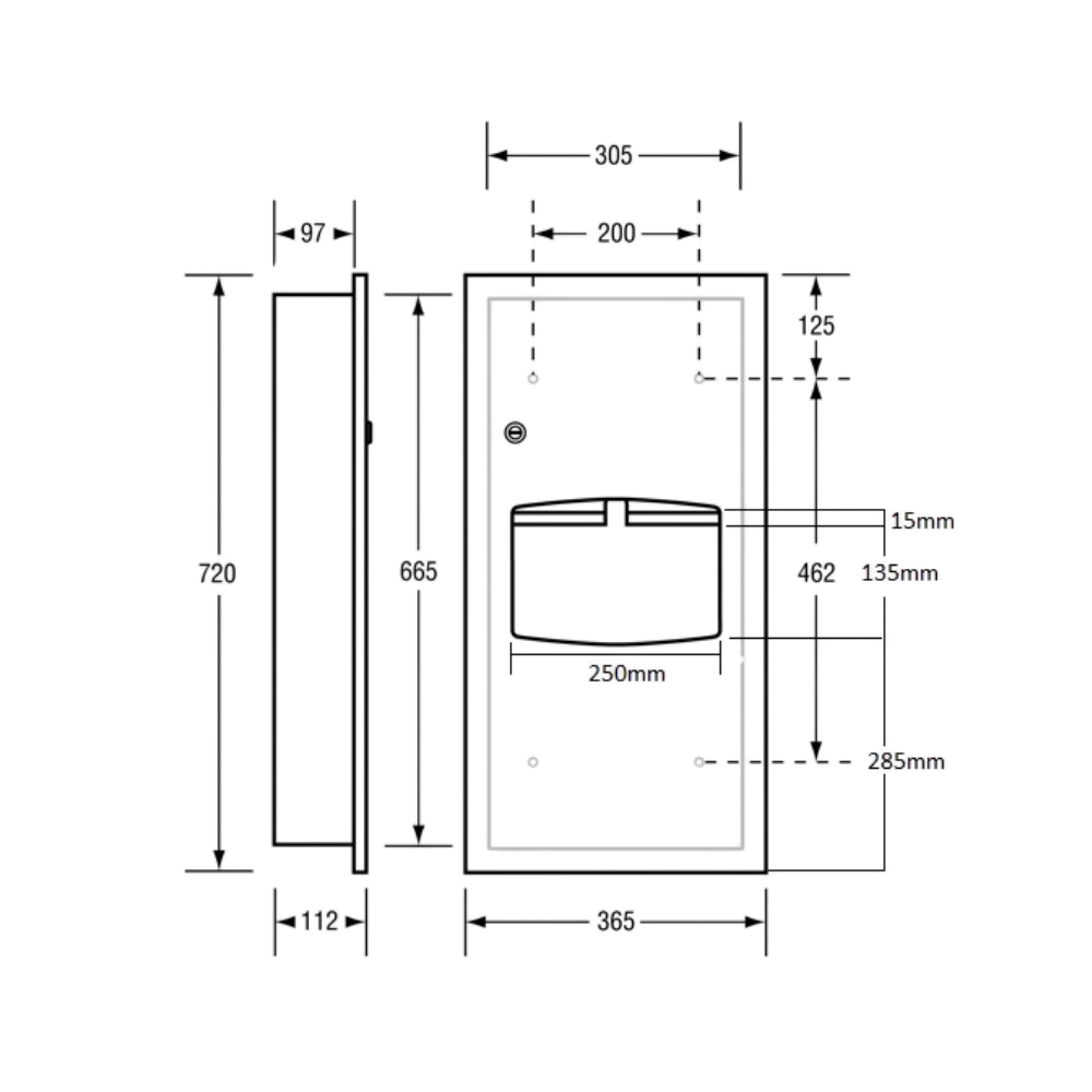 Paper Towel Dispenser & 6.5L Waste Receptacle Recessed in Designer Black - ML710_REC_MK2_DESIGNER