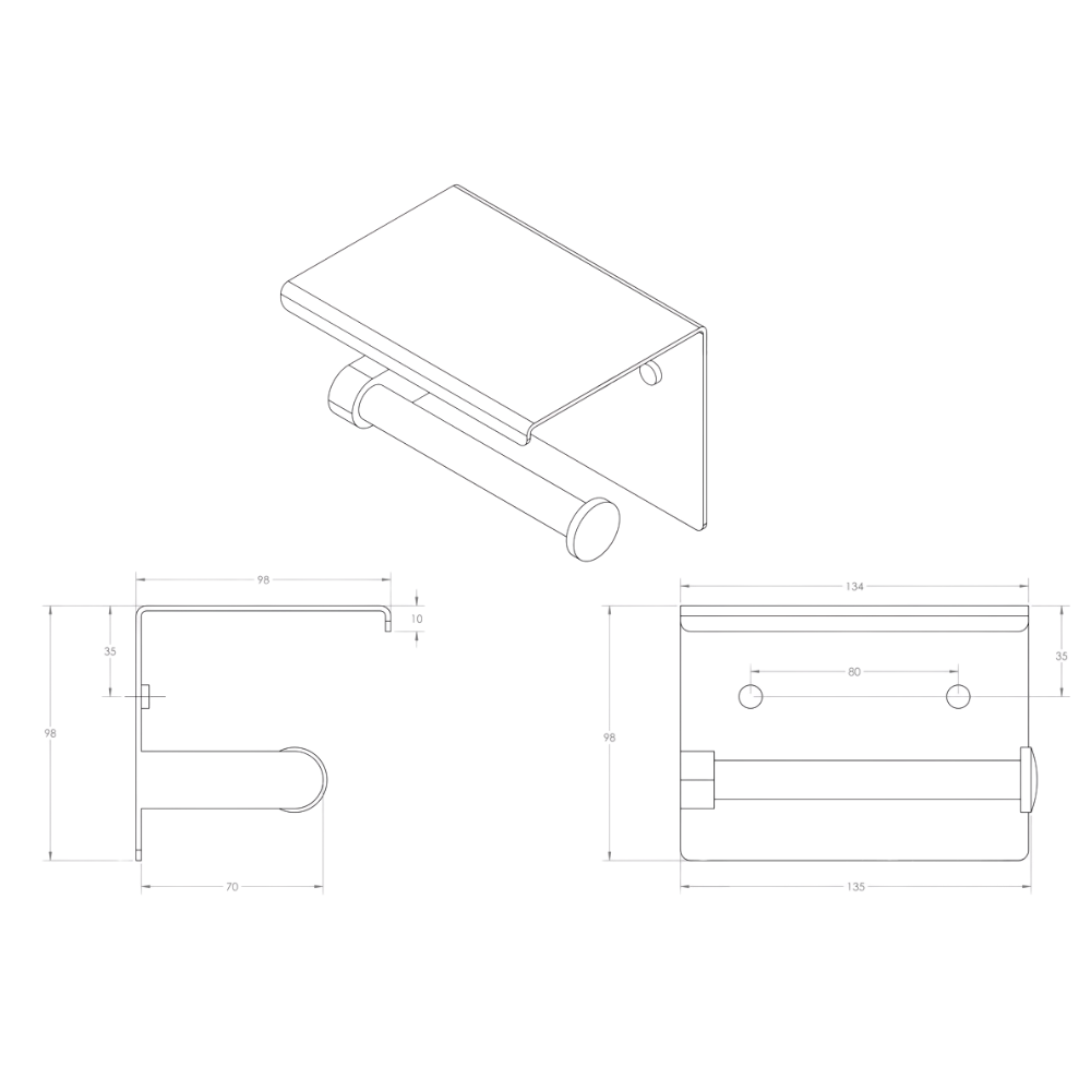 Single Toilet Roll Holder with Shelf Top in Satin Stainless Steel - ML268_TRH_SS