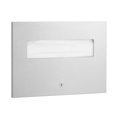 Satin-finish stainless steel. Flush lock. Door has 90° return, conceals flange. Dispenses 500 toilet seat covers.