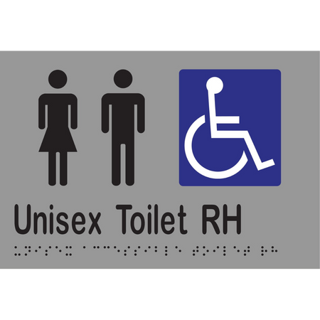 Unisex Accessible Toilet RH Braille Sign in Silver Vinyl - MLS16223_SIL