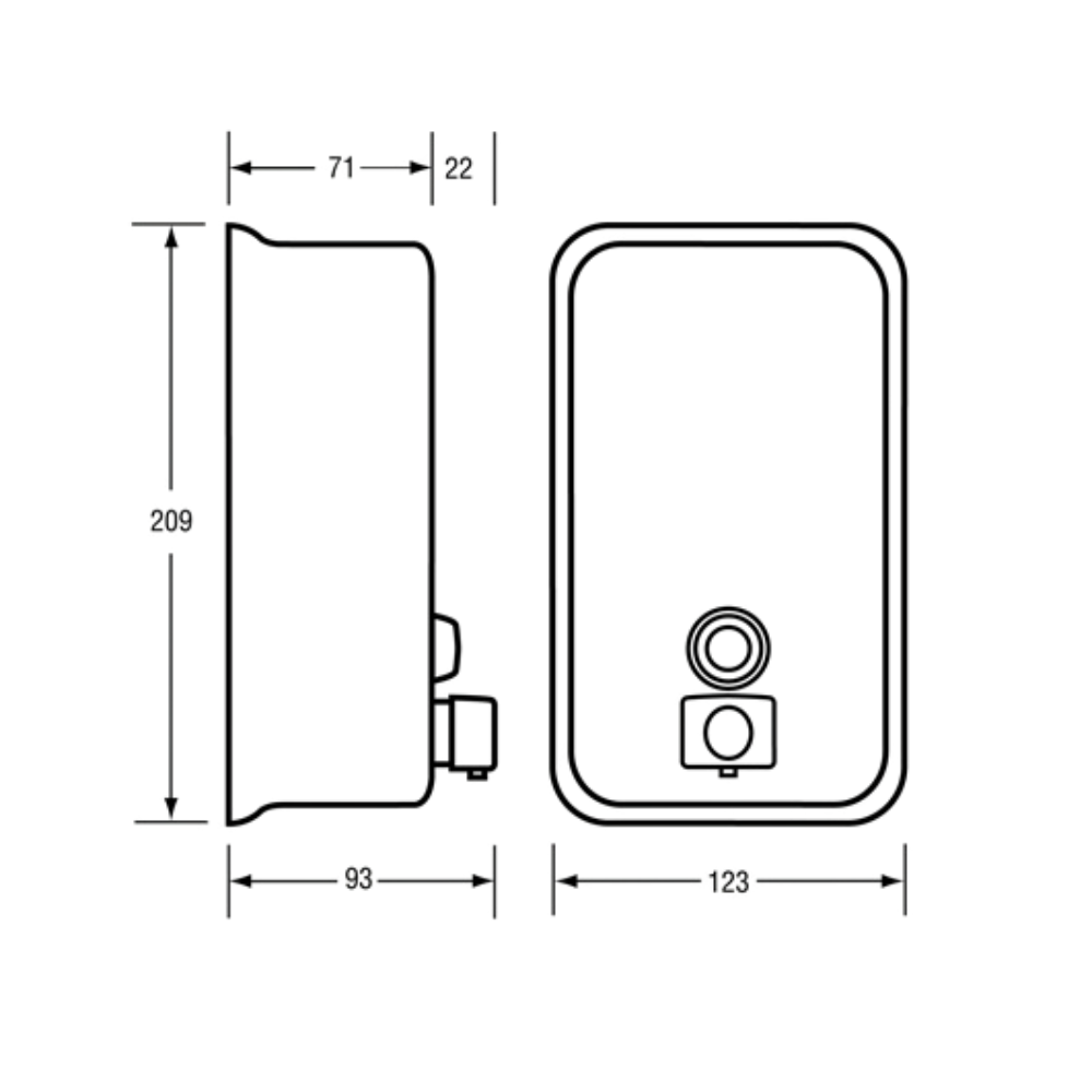 Dimensions: 209mmH x 123mmW x 93mmD