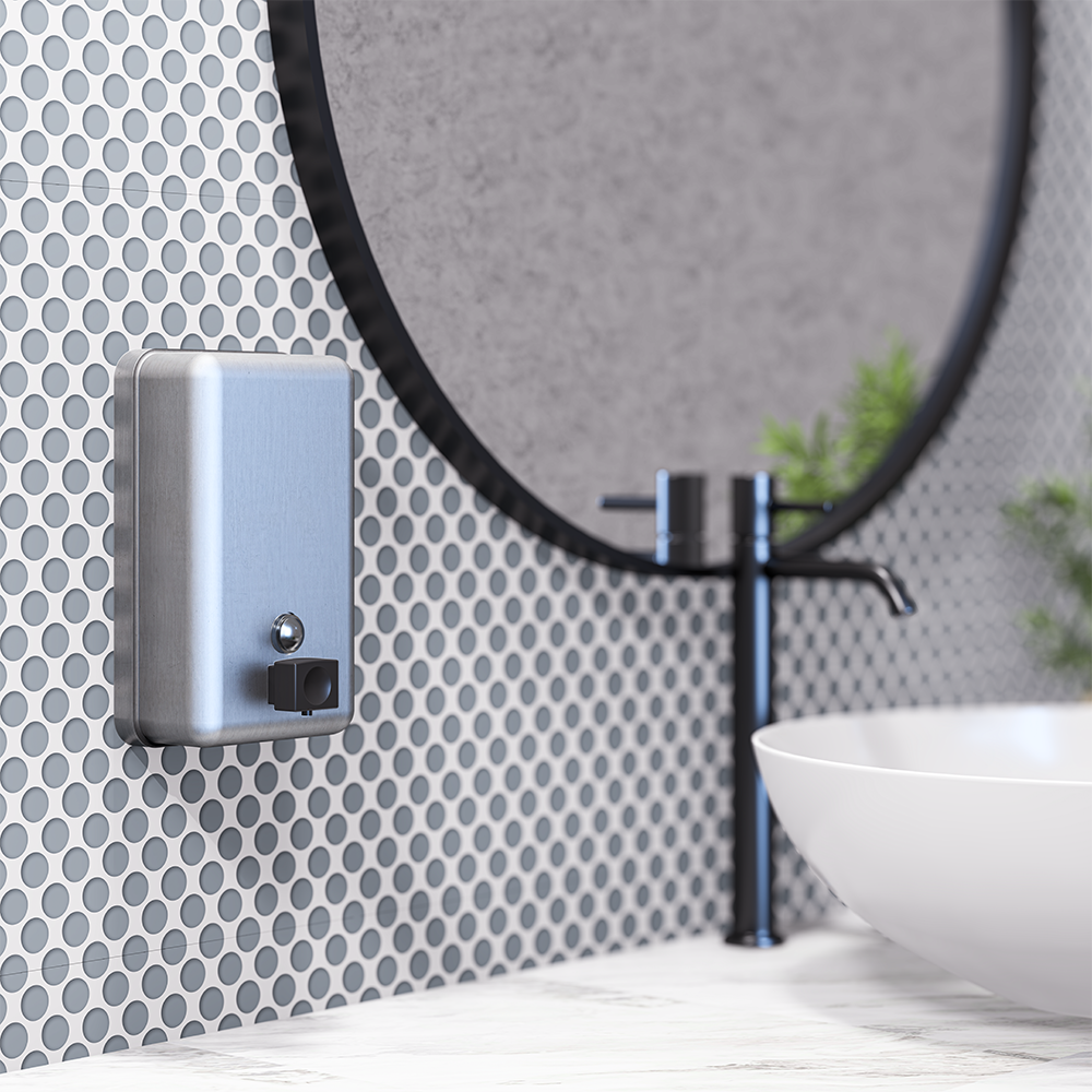 Vertical Button Pump Soap Dispenser in Satin Stainless Steel - ML605BS_N